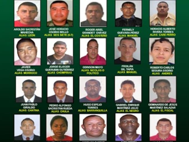 Los supuestos cabecillas de bandas delincuenciales que aparecen en el cartel de los más buscados están con los alias de León, Seis-Siete, El Costeño, Manuel, Care´perro, Morroco, Chómpiras, Nicolás o político, Manuel, Andrés, Cantina, El Chula, Barranquilla, El Negro, el Fiscal, Carnicero, Camelia, Care´malo, Duván y Nariz. Las autoridades ofrecen una recompensa de 50 millones de pesos por cada uno de las personas que aparecen en el cartel