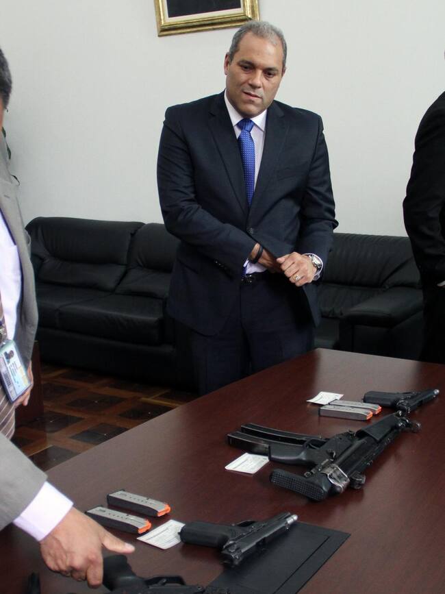 Sorprendió el abultado número de armas de corto y largo alcance que tenía en su poder José David Name quien además pidió desarme e invito a sus colegas a imitar este acto.