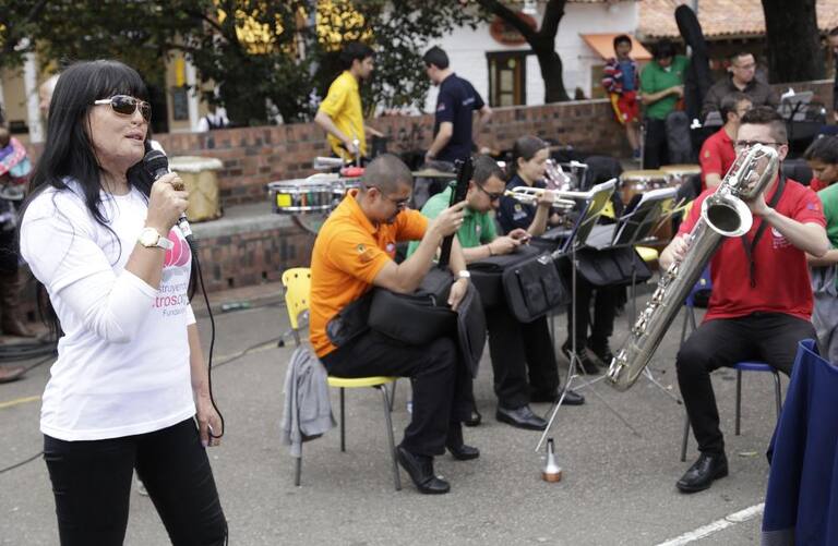 Las víctimas quemadas con agentes químicos realizaron un plantón con la participación de la Orquesta Filarmónica Juvenil.