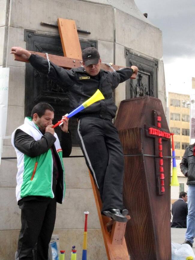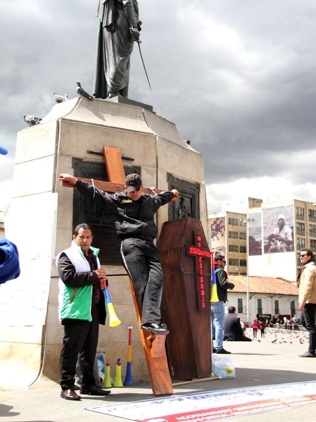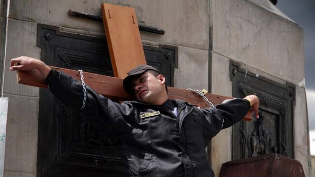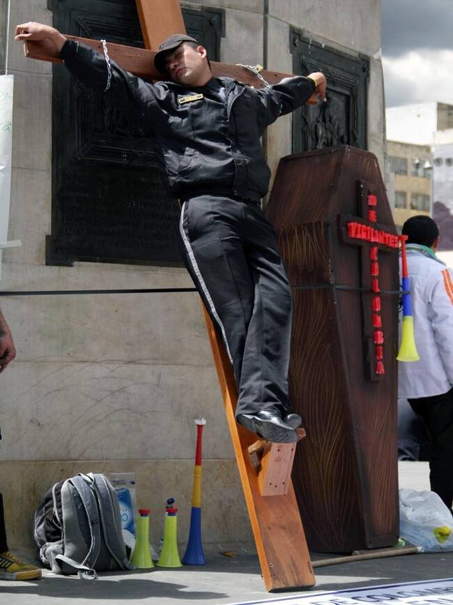 En fotos: Vigilantes inician huelga de hambre en Bogotá