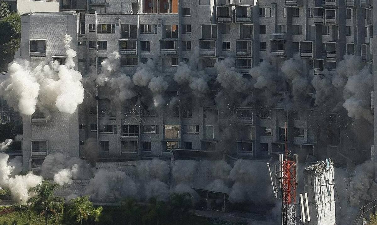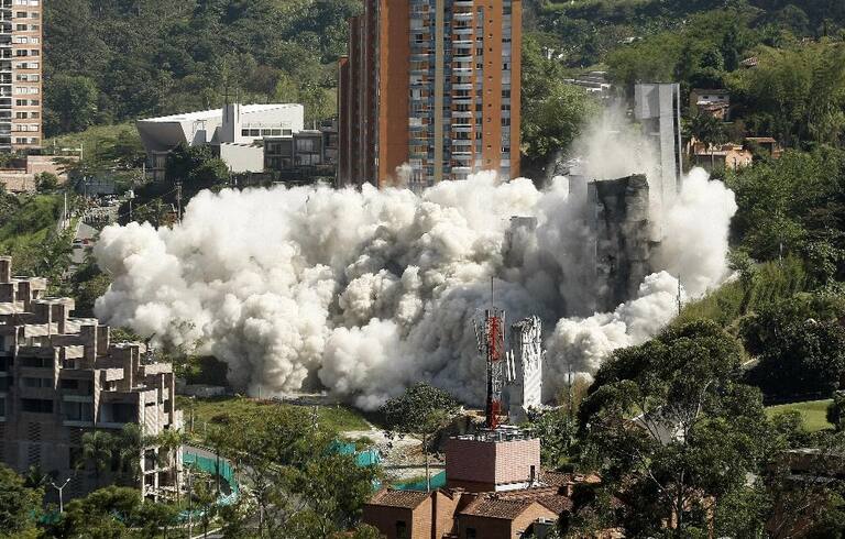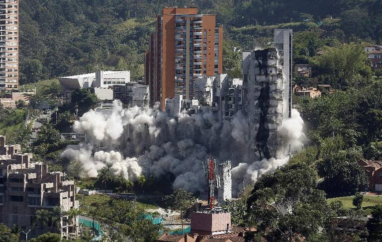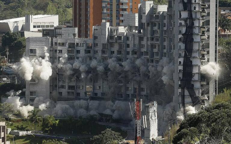 Así fue el proceso de implosión del conjunto habitacional. Fotos de EFE y Caracol Radio.