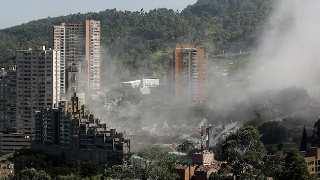 En imágenes la demolición del edificio Space, en Medellín