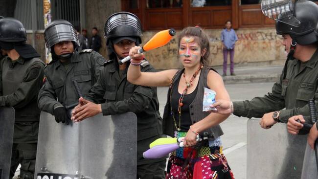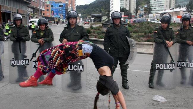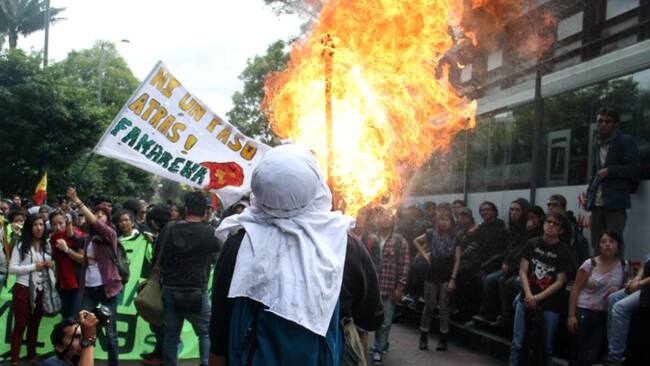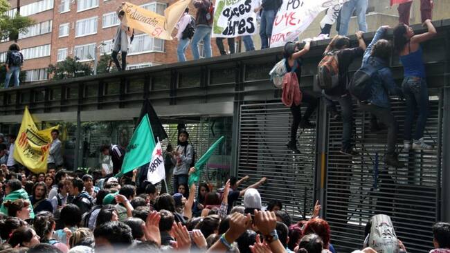 Foto 4 de 14Los estudiantes de diferentes universidades dirigidos por la MANE, realizaron un plantón frente a las instalaciones del ICETEX.