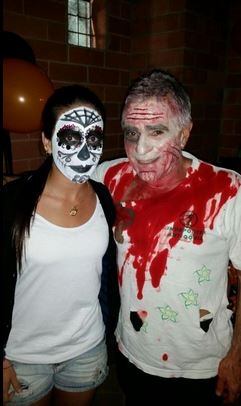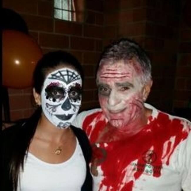 La antioqueña se disfrazó con toda su familia y escribió en su cuenta en Twitter: Happy Halloween! Todavía nos disfrazamos todos en mi casa :D Niños a recoger muchos dulces hoy;) #ExtrañandoAMiZombie