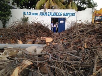 Alrededor de 300 niños de la institución educativa Juan Salvador Gaviota al Norte de Cartagena deben realizar una serie de maniobras para ingresar a la escuela ya que la poda de árboles de una bonga les impide el ingreso al instituto