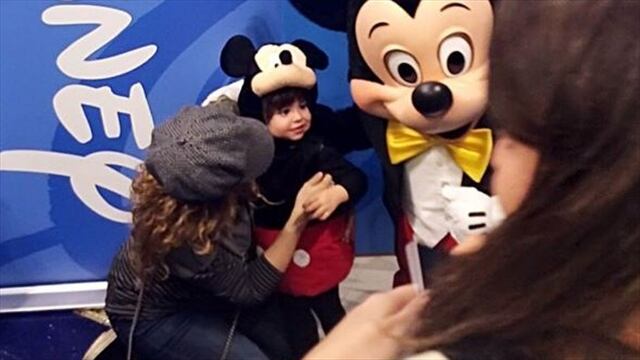 Shakira aparece con su pequeño Milan, quien estaba disfrazado de Mickey Mouse. Y aunque entró 'de incógnito', como siempre acaparó la atención