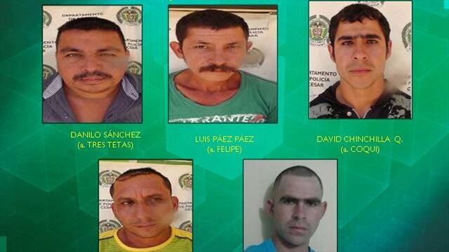 Los capturados son Danilo Sánchez Carrillo, alias “Tres tetas”; Luis Páez Páez, alias “Felipe”; David Chinchilla Quintero, alias “Coquí”; Wilson Mora y Taison Chinchilla Andrade, alias “Ucho”, cuatro de ellos con notificación azul de búsqueda y localización expedida por Interpol.Así mismo se logró la incautación de varios elementos que eran propiedad de los capturados: una motocicleta, un computador portátil que será enviado a análisis de su contenido, cinco celulares, dos simcard, una micro memoria y dinero en efectivo