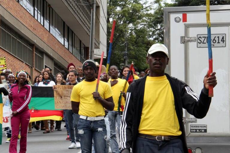 Recorrieron a pie desde el Cauca y llegaron a Bogotá exigiendo que pare la mineria ilegal porque contamina los rios y el habitad de su región.