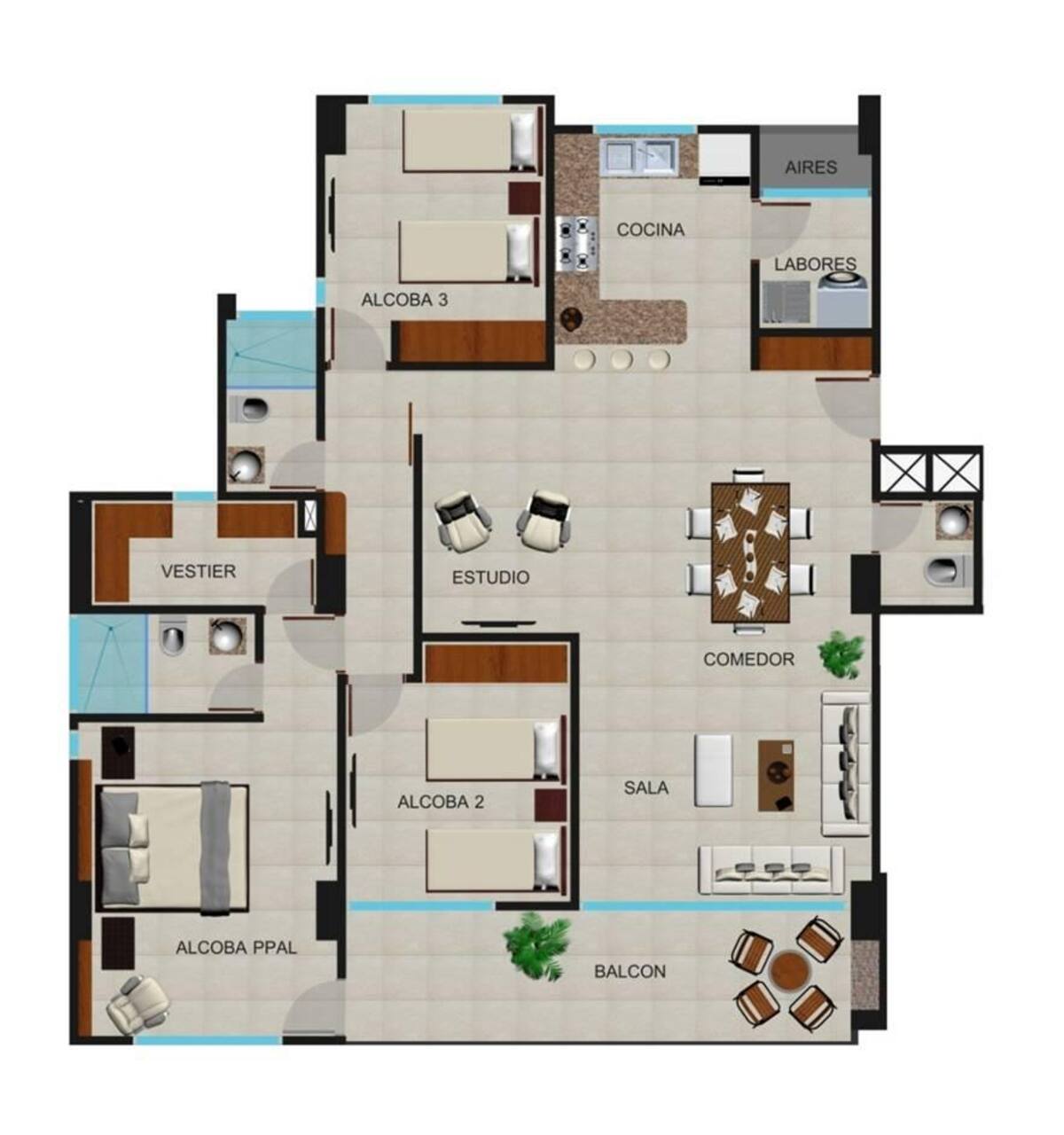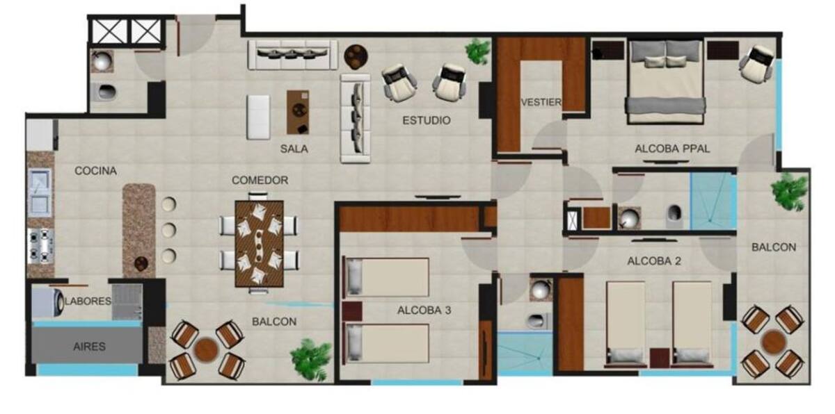 Plano Apartamento 3 Alcobas.