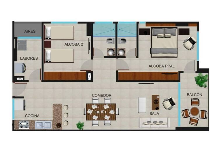 Plano Apartamento 2 Alcobas.
