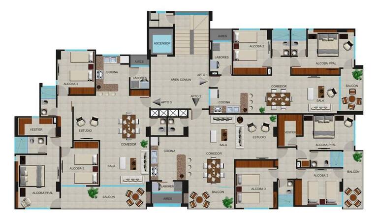 Plano de uno de los pisos con sus respectivos apartamentos.
