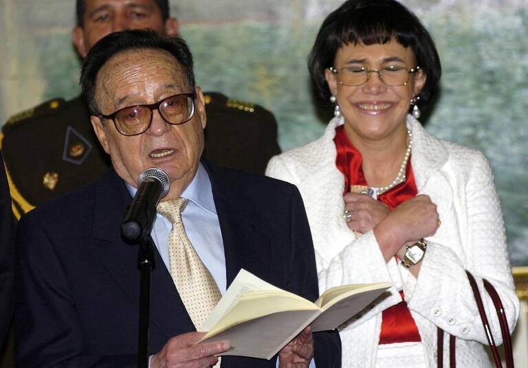 La poesía fue otro de los talentos de 'Chespirito'. En Perú, el comediante leyó uno inspirado en Florinda Meza. AP.