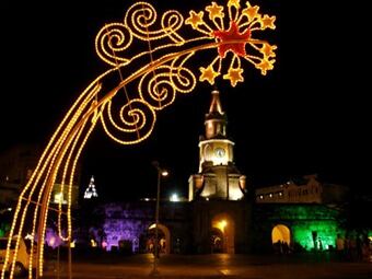 Bajo el lema "En esta Navidad, Cartagena te ilumina", la primera dama del distrito, María Victoria Donado de Vélez, presentó el alumbrado navideño de esta capital. Son en total 3 millones de luces que embellecerán por las noches el Centro Histórico y 40 barrios de la ciudad, desde este 7 de diciembre