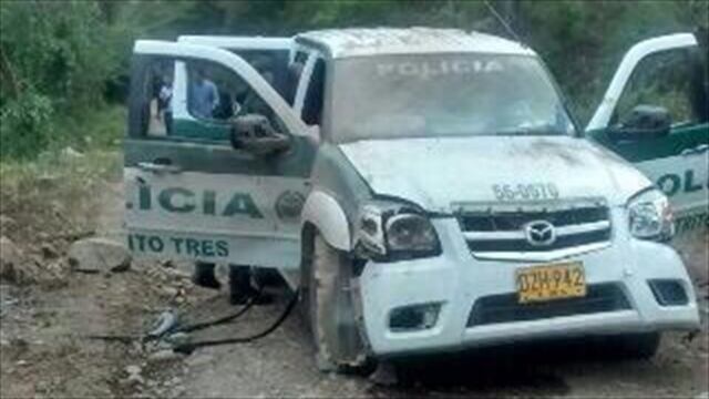 El hecho se registró en el sector conocido como Palo Gordo, donde al paso de la camioneta de placas DZH 942 en la que se movilizaba el comandante del Tercer Distrito, su conductor y cuatro miembros del grupo de reacción en dos motocicletas, fueron sorprendidos con la activación de un artefacto explosivo