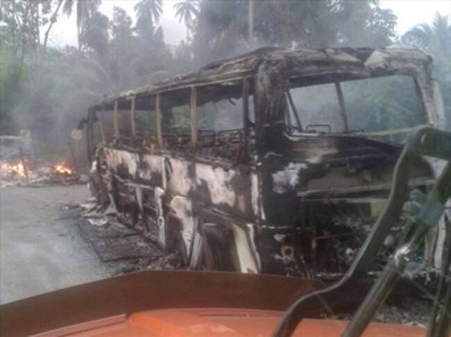 “Atravesaron un bus de una empresa particular que supuestamente venía a recoger un paseo. Averiguamos, la lista de la gente del paseo y ninguno estaba programado para pasear y el bus fue incinerado por cuatro sujetos que salieron a la vía”, precisó el mandatario local