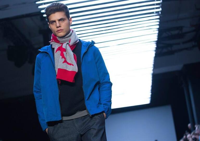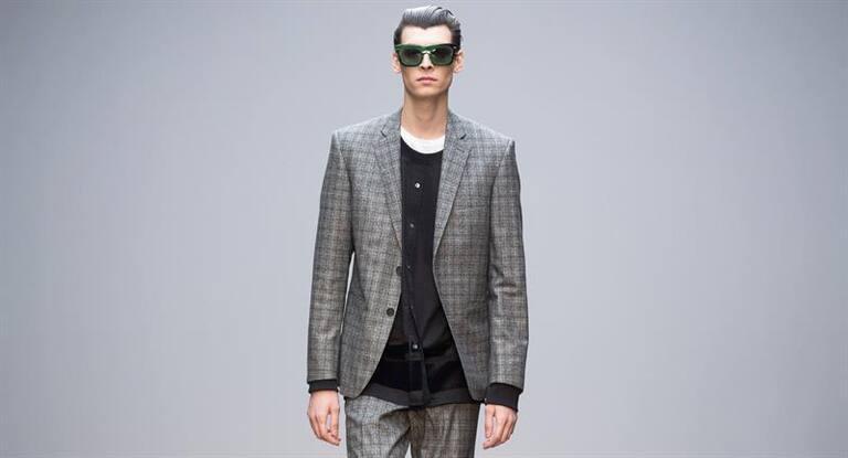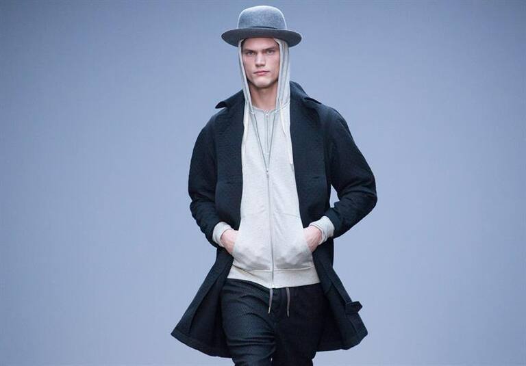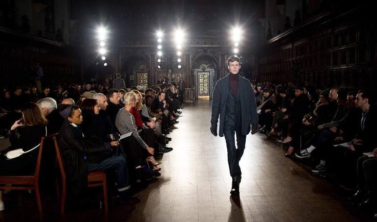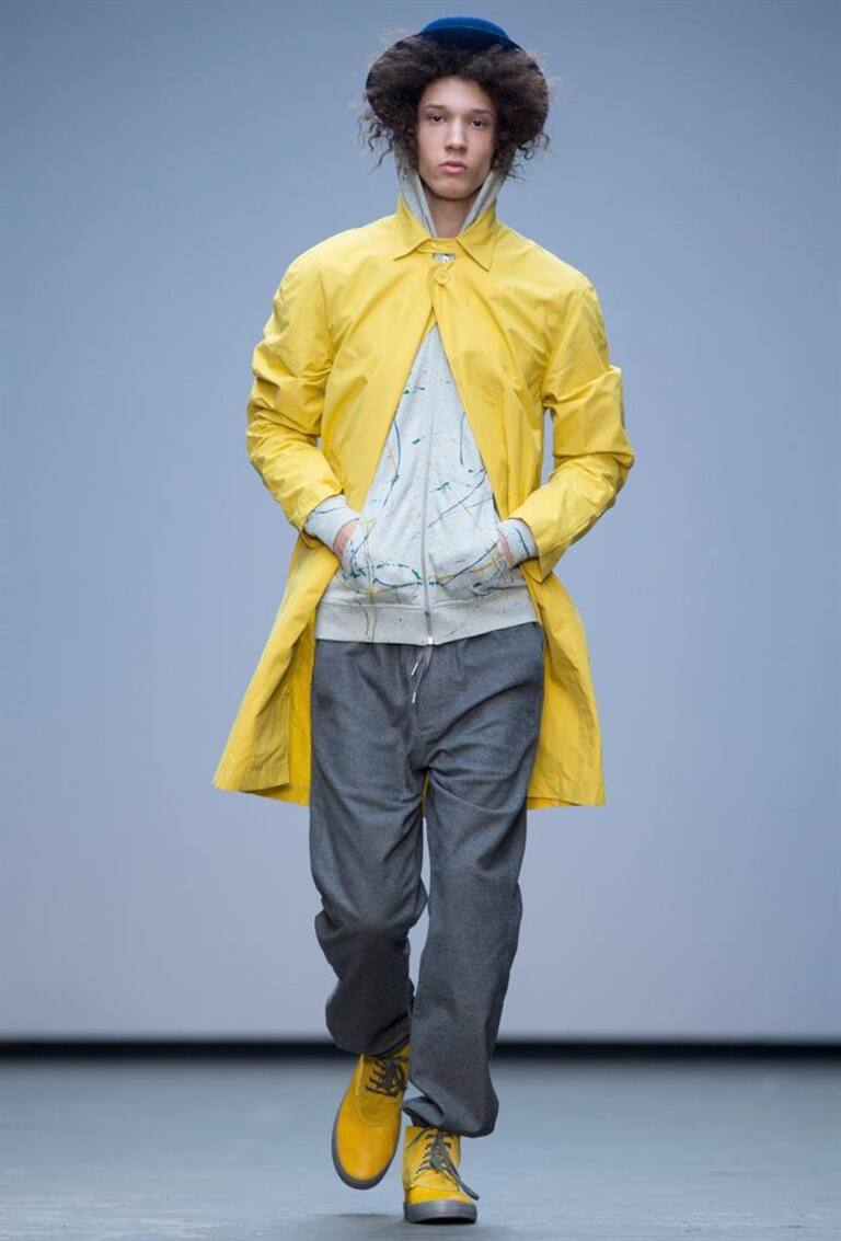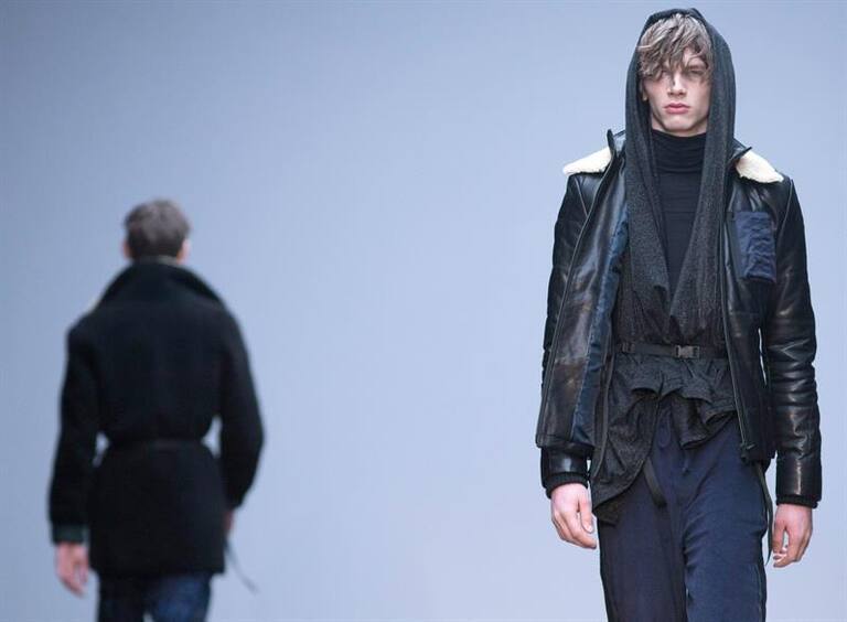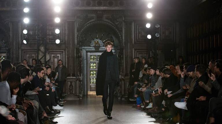 Una serie de modelos presentan la colección de otoño, invierno 2015 en la semana de la moda masculina en Londres, Inglaterra, que se realizará hasta el próximo 12 de enero.
