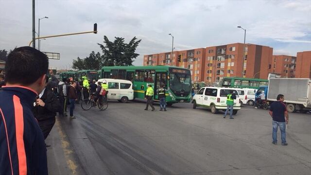 Unos 20 vehículos blancos de transporte público especial bloquean la entrada y salida de articulados de Transmilenio en el Portal Américas