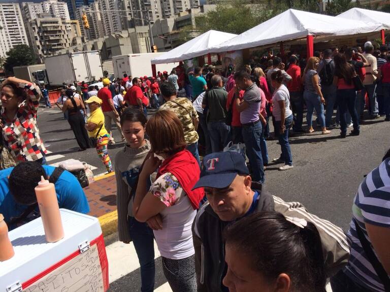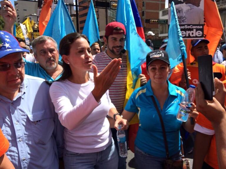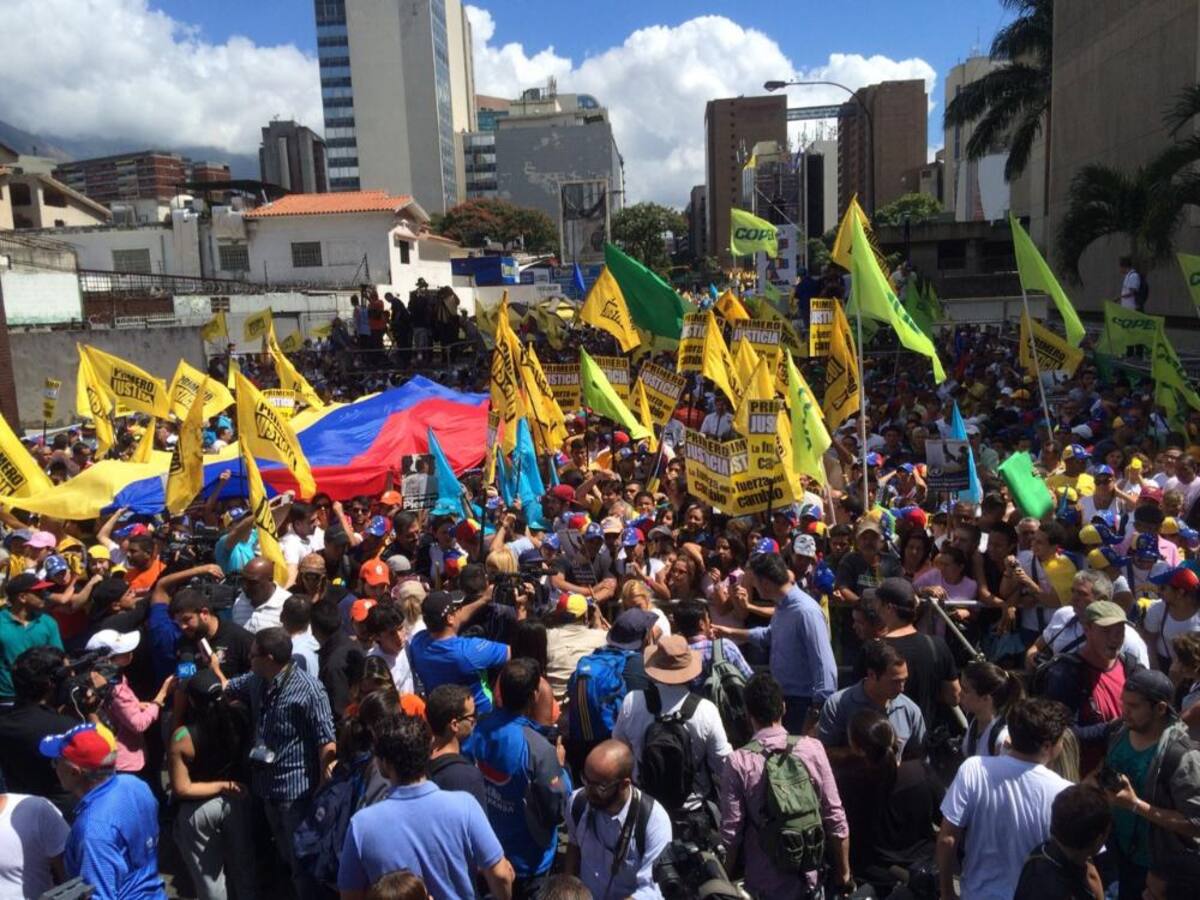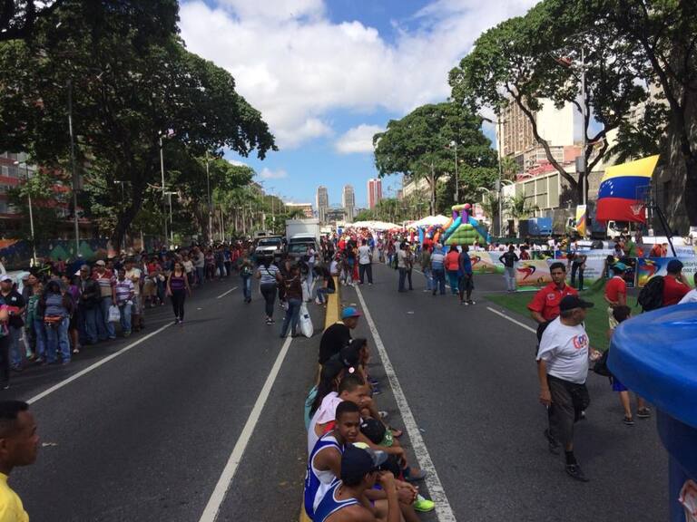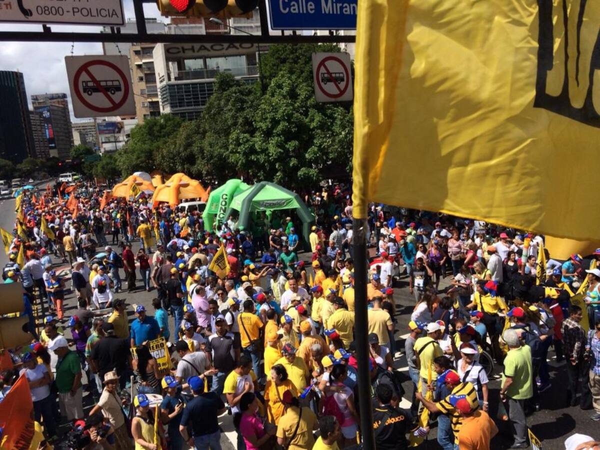 Vestidos de blanco o amarillo y con banderas y gorras avanzan desde tres puntos de la ciudad en una concentración que desembocará en la céntrica zona de Chacaito al oriente de Caracas.