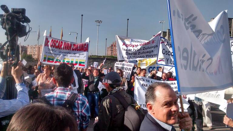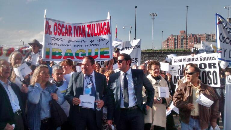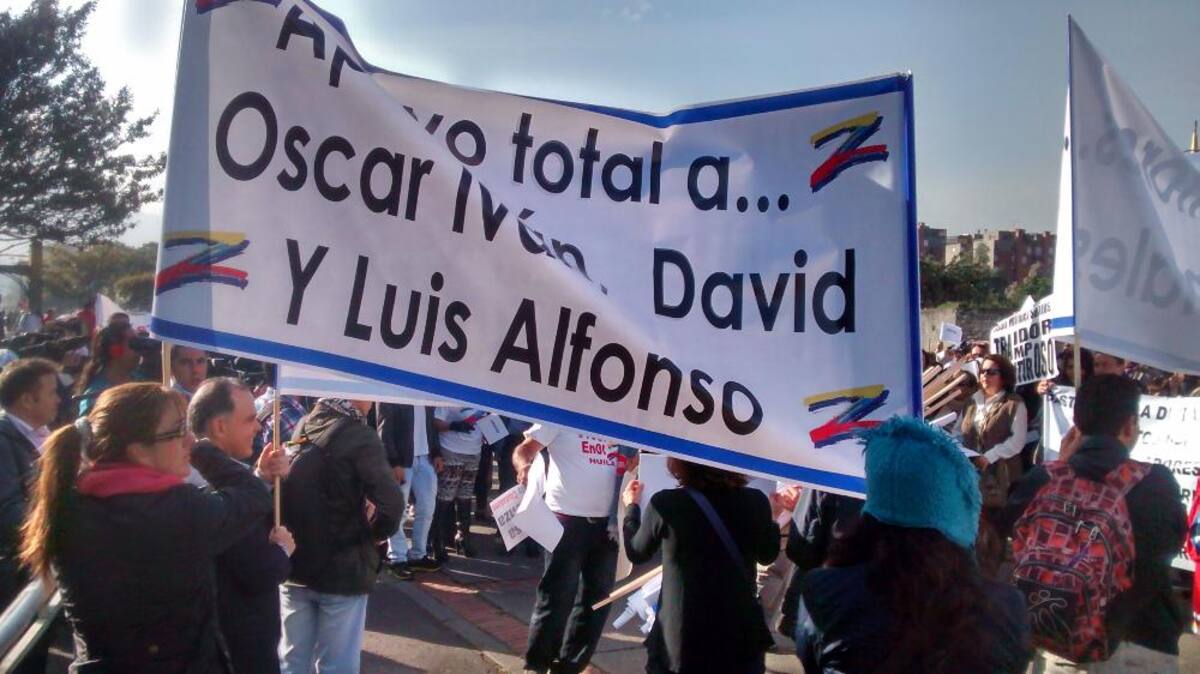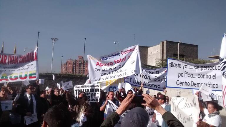 En buses llegan los seguidores del Uribismo, quienes respaldan a Óscar Iván Zuluaga en el proceso por el caso del hacker Andrés Sepúlveda.