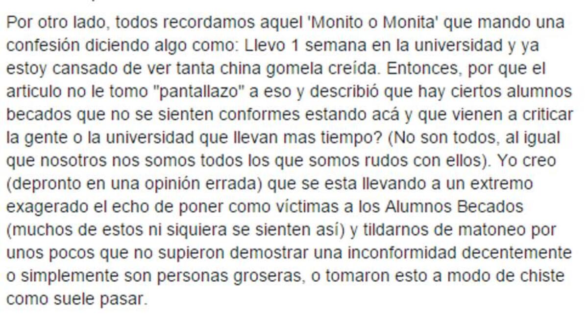 Universitarios insisten en Facebook que es falso el matoneo a los becados