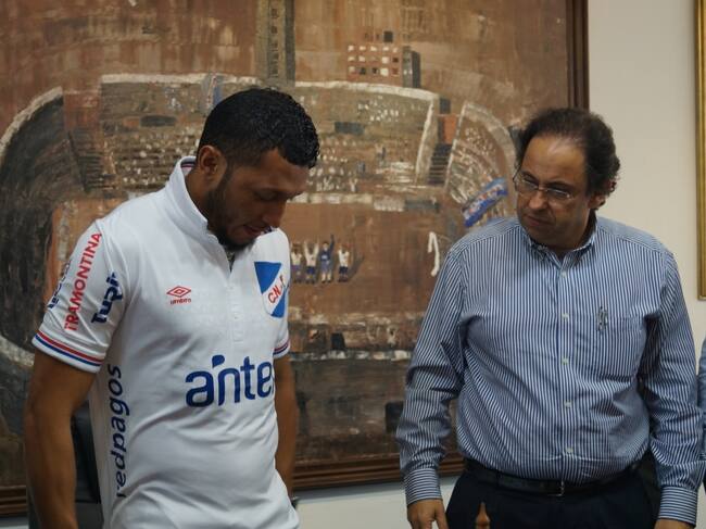 El defensor central firmó su vinculación a los 'bolsos' de Montevideo y de inmediato fue presentado a la prensa. Nacional disputa ante Palestino de Chile la opción de llegar al grupo 5 de Copa Libertadores. Foto: Caracol Radio