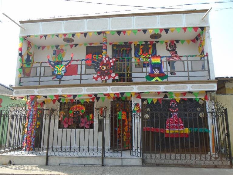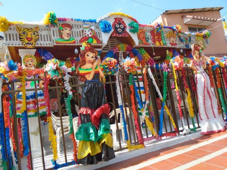 Las fachadas de los hoteles y las aceras de los barrios están llenos de color y de personajes representativos de la fiesta. Fotos: Carnaval de Barranquilla.