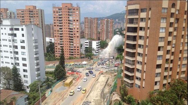 Operarios de EPM repararon el daño en una tubería de la red de acueducto, en la carrera 30 con la calle 9 sur, Loma de Los Balsos, transversal inferior del barrio El Poblado, ocurrida mientras un contratista de la construcción de uno de los intercambios viales adelantaba sus obras