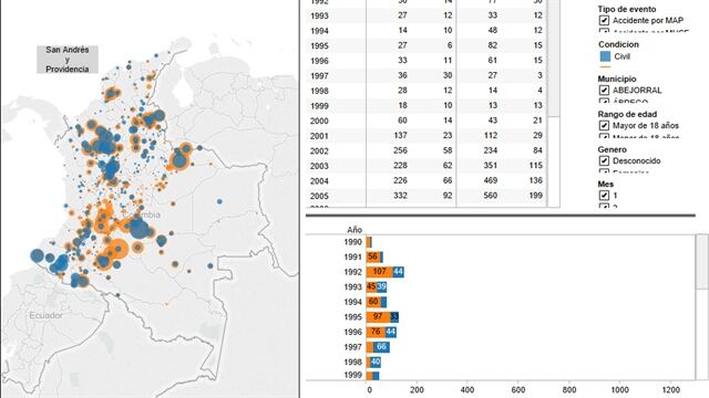 Un documento de la Dirección Nacional contra Minas de la Presidencia de República señala que el 38 por ciento de las víctimas de minas antipersona son civiles, mientras el 62 por ciento son miembros de la Fuerza Pública