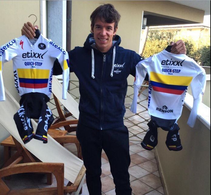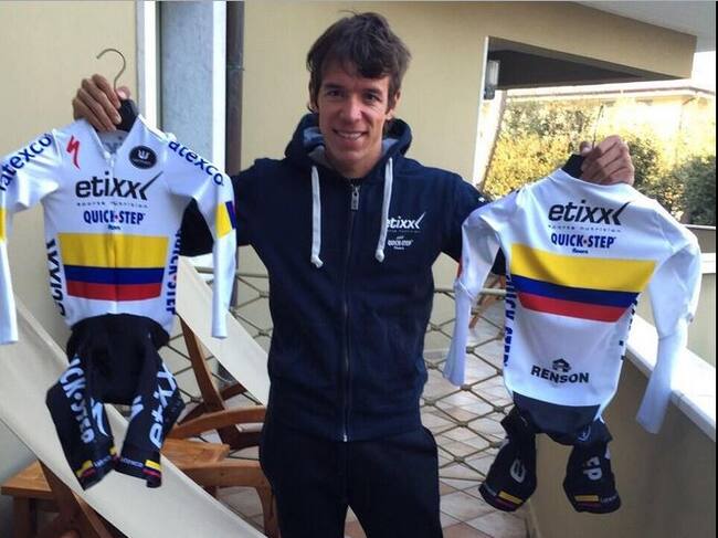 En el prólogo de la Tirreno Adriático, una crono de 5.7 kilómetros, Rigoberto Urán lucirá oficialmente la camiseta de Campeón Nacional de contrarreloj. También competirán Nairo Quintana, Carlos Betancur y el Team Colombia. Foto: @UranRigoberto