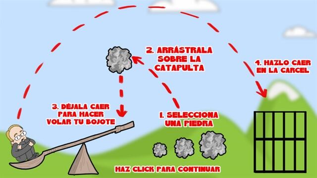 El juego se trata de utilizar una catapulta para enviar a estos personajes a prisión