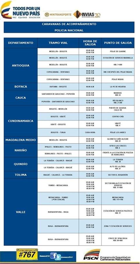 Cuadro difundido por el Invías, sobre medidas especiales de seguridad para los camioneros que no están en paro.