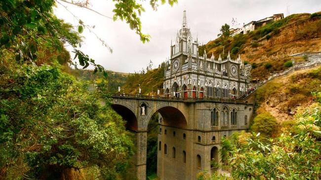 Foto 6 de 6A finales del siglo XVIII sucedió el "milagro de Dios sobre el abismo" en Ipiales, Nariño, donde se apareció la Virgen del Rosario. Su estilo arquitectónico gótico en medio de un abismo llama la atención de turistas y peregrinos de todo el mundo.
