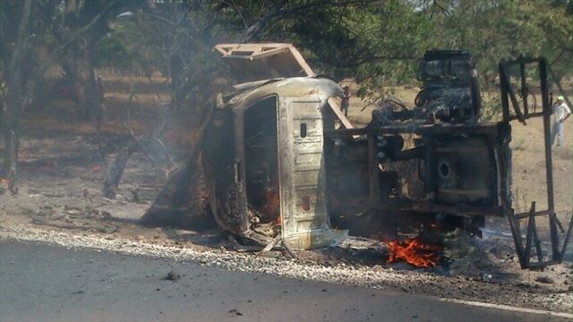 La camioneta venía cargada de gasolina de contrabando, de la mal llamada “Caravana de la muerte” se le exploto una de las llantas delanteras, se salió de la carretera, se estrelló contra los árboles y se prendió en llamas