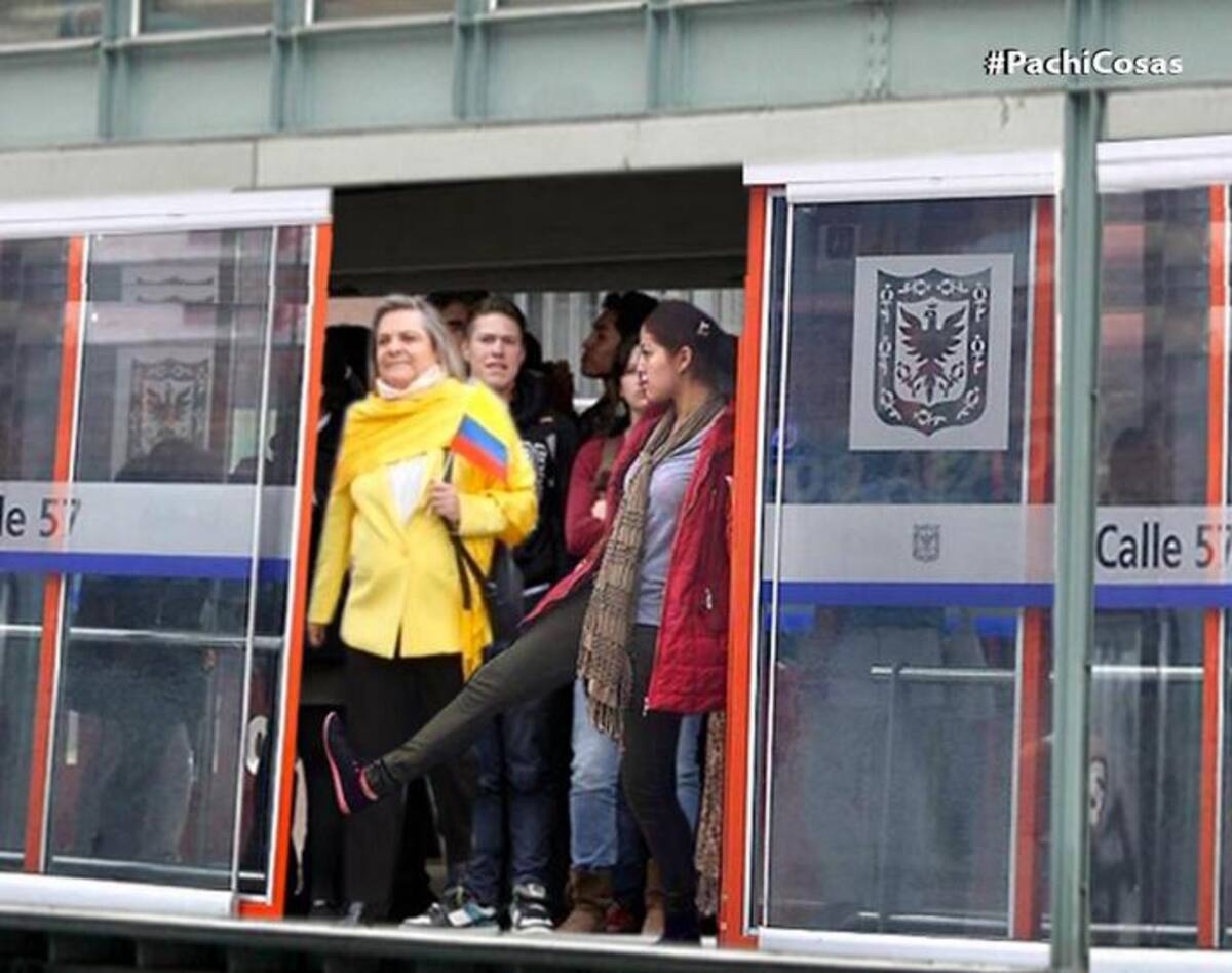 La joven que tranca una puerta de Transmilenio en 'trending topic' en Twitter e inspiró varios chistes gráficos.