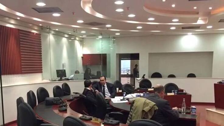 El magistrado investigado ha permanecido todo el tiempo al lado de su apoderado, sentados en una de las sillas ubicadas adentro del recinto que utiliza la Comisión para hacer sus plenarias.