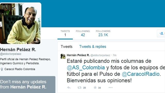 Hernán Peláez publica sus primeros mensajes en Twitter