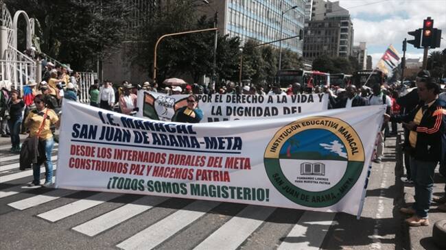 Miles de profesores marchan este lunes por varias vías de Bogotá, lo que afecta la movilidad de los ciudadanos