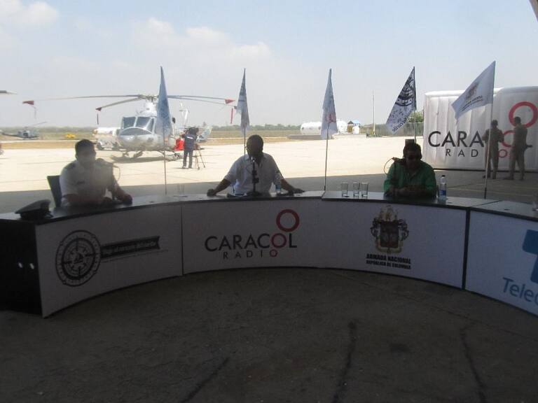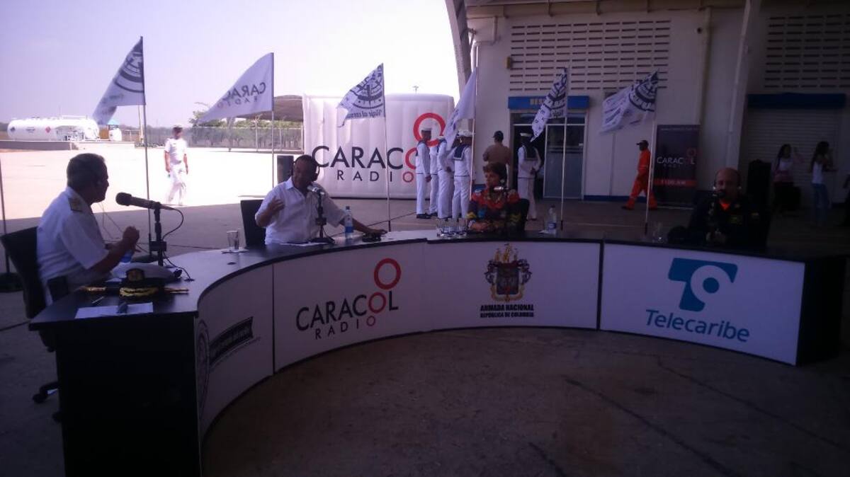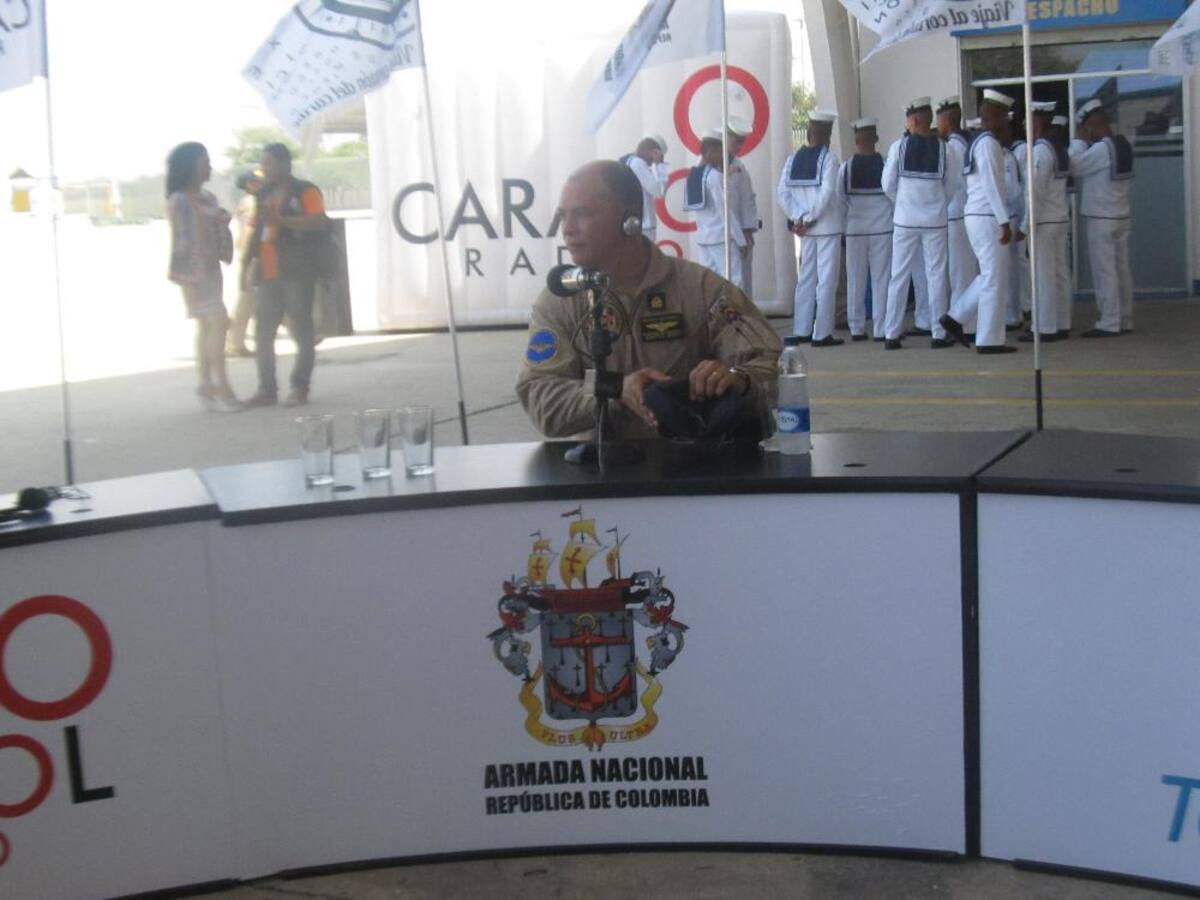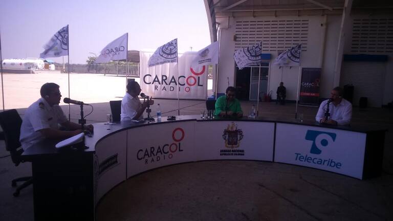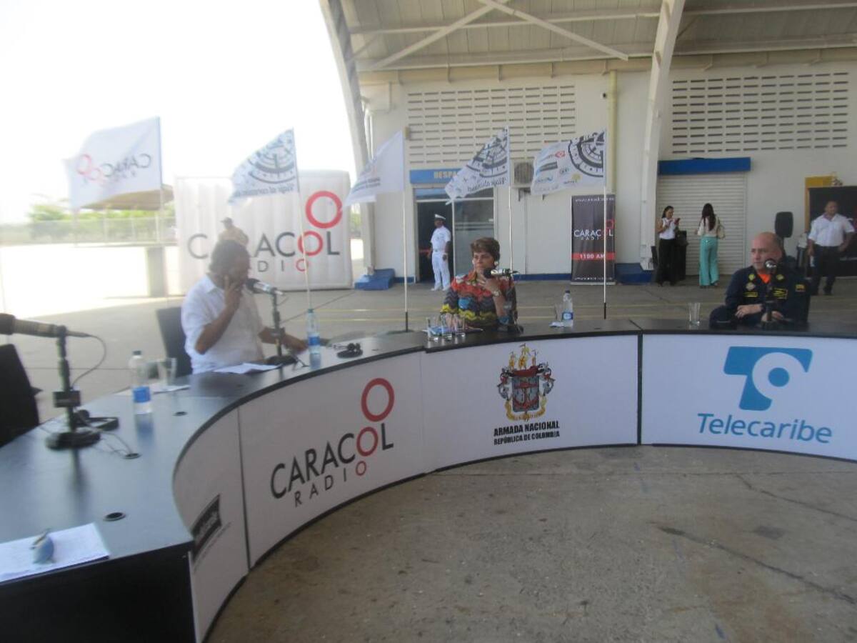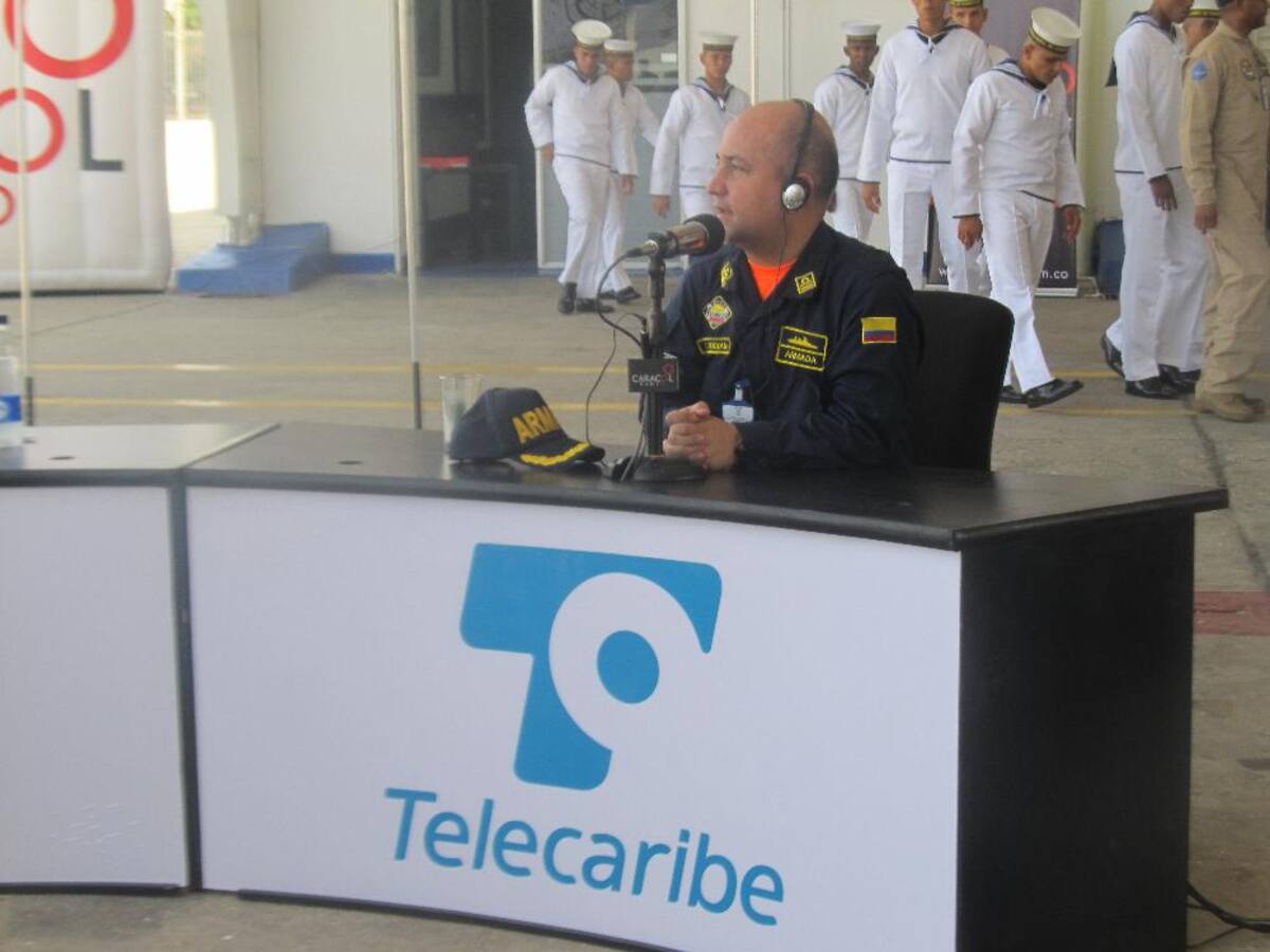 Stand Invitados de izquierda a derecha Teniente Diego Areiza, Martín Tapias -Director de noticias, Juan Manuel Buelvas- Director del Canal Regional Telecaribe.