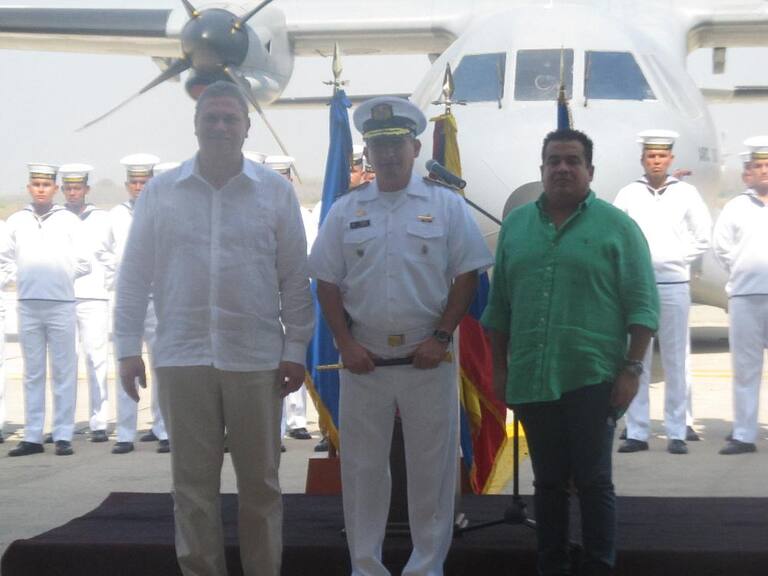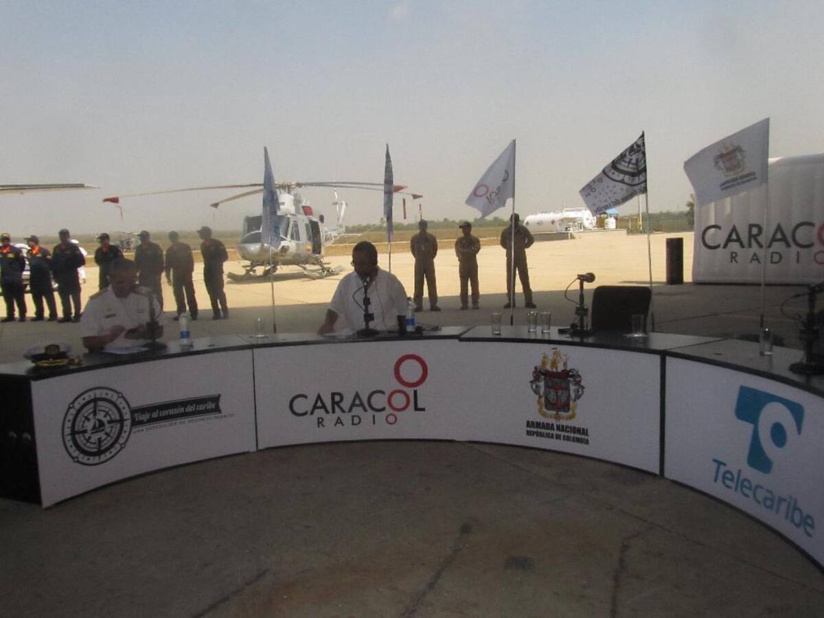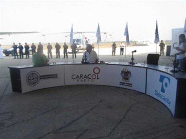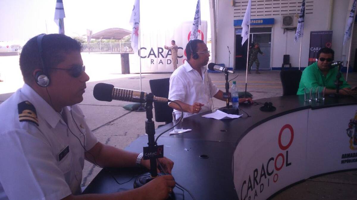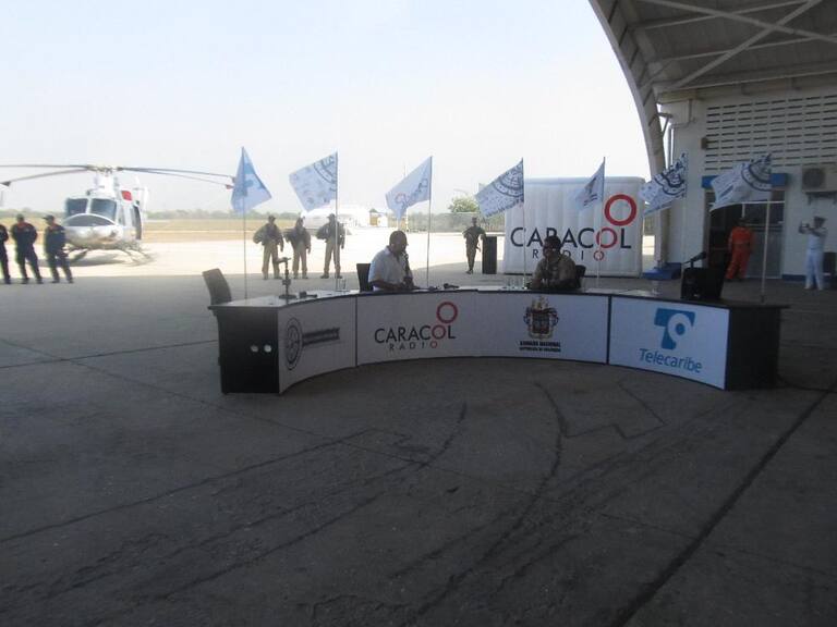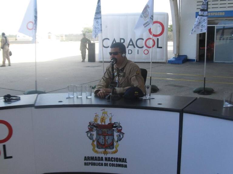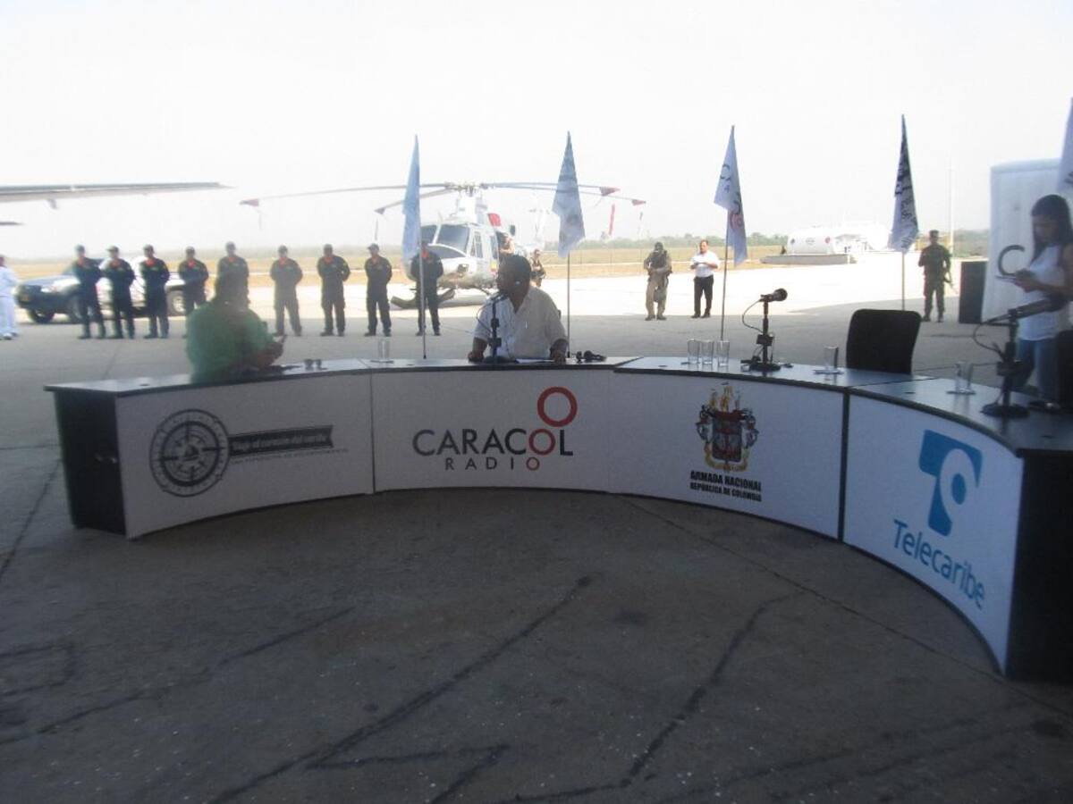 Stand Invitados de izquierda a derecha Teniente Diego Areiza, Martín Tapias -Director de noticias, Juan Manuel Buelvas- Director del Canal Regional Telecaribe.