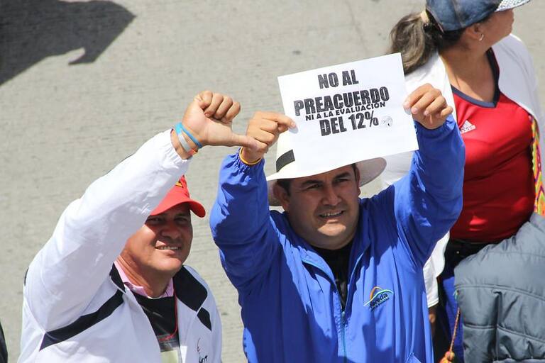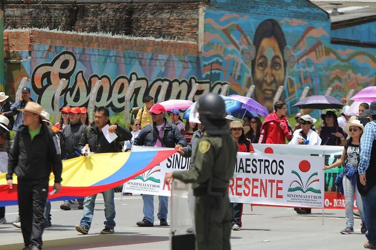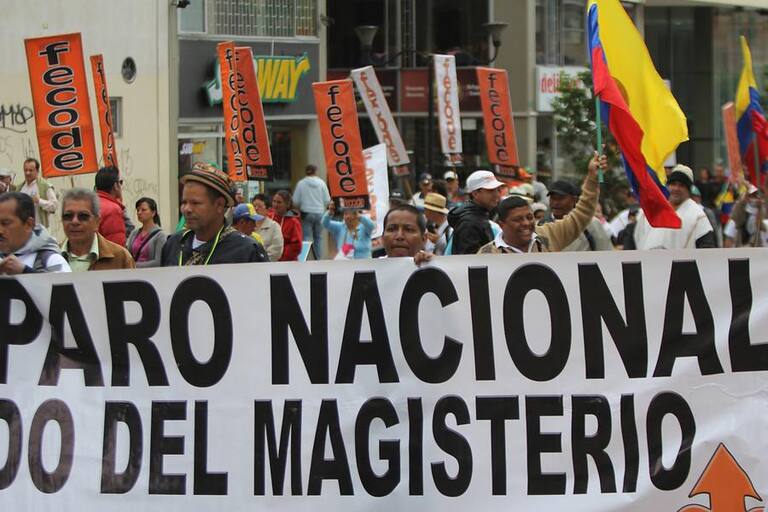 • 50.000 educadores de todas las regiones del país se dirigen al Ministerio de Educación, ubicado en la capital colombiana, apara manifestar su preocupación frente al acuerdo al que llegó el Gobierno con Fecode.