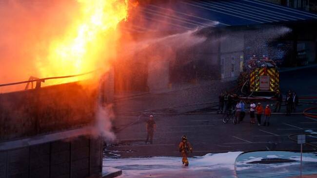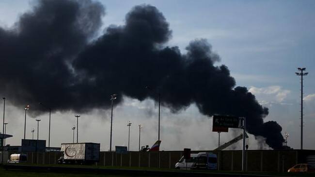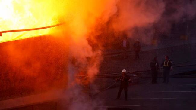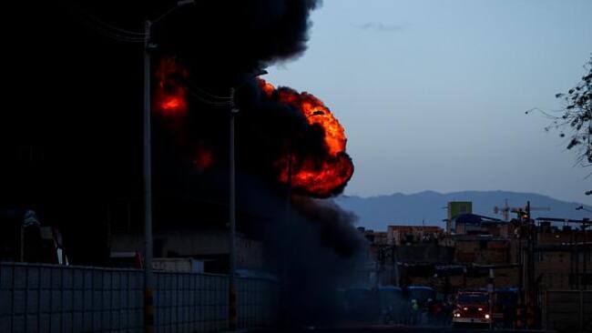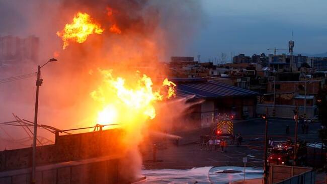 Foto 5 de 14Oficiales del Cuerpo de Bomberos de las localidades de Puente Aranda, Garcés Navas y Fontibón atendieron un incendio estructural, en una bodega de solventes, ubicada en la carrera 119 con 64, en la localidad de Engativá, al occidente de Bogotá.