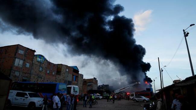 Oficiales del Cuerpo de Bomberos de las localidades de Puente Aranda, Garcés Navas y Fontibón atendieron un incendio estructural, en una bodega de solventes, ubicada en la carrera 119 con 64, en la localidad de Engativá, al occidente de Bogotá.