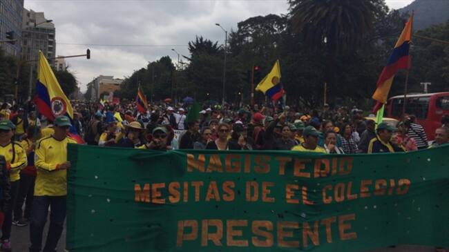Hacia el Ministerio de Educación avanza la movilización de la 'toma de Bogotá' que convocan 50.000 profesores.