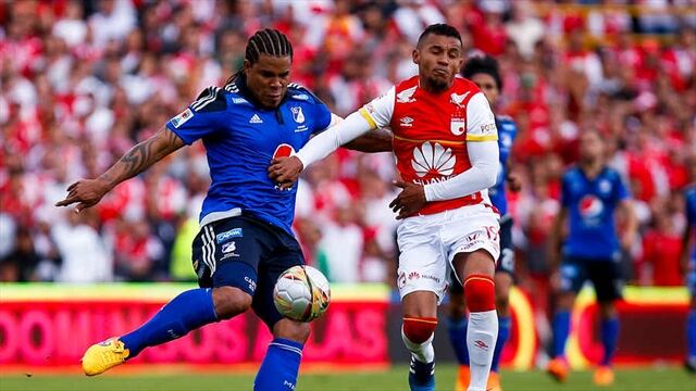 Santa Fe sacó provecho de su mayor virtud, el juego aéreo con los pases precisos de Omar Pérez. A los 27 minutos el 10 cardenal centró tras un tiro de esquina, Yerry Mina le ganó a los centrales y de potente cabezazo abrió el marcador