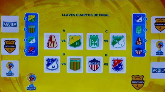Finalizada la fecha 20 del todos contra todos de la Liga Águila, la Dimayor realizó el sorteo de los cuartos de final, en el estadio Nemesio Camacho El Campín