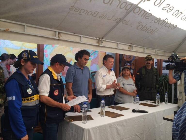 Santos visita la zona de la tragedia por avalancha en Salgar Antioquia