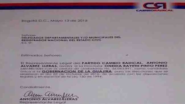 Cambio Radical ratifica aval a Oneida Pinto