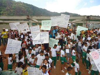 Estudiantes y padres de familias de los corregimientos de Mina de Santa Cruz y Delicias protestarán para exigir la reanudación de las obras de la construcción del megacolegio, las cuales están paralizadas cerca de dos semanas a raíz de las presuntas amenazas y extorsiones contra los contratistas, por supiestos integrantes del Clan Úsuga que opera en la zona. A un año de haber iniciado los trabajos, solo avanzan un 30%. y exigen celeridad a la firma contratista Inversiones y Construcciones BETA S.A.S. porque el actual colegio se encuentra deteriorado. Con esta situación se han visto afectados 333 estudiantes, que reciben sus clases en la calle o improvisan salones en cualquier lugar.