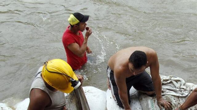 La Unidad de Gestión del Riesgo trabaja en la orilla del río Cauca para evitar el ingreso de agua a la mina.