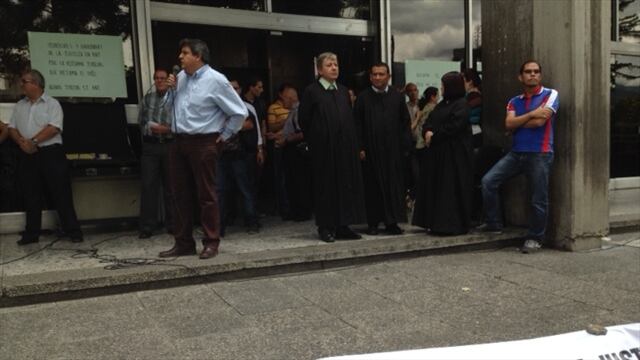 Los jueces se reunieron en las puertas del Palacio de Justicia en Medellín, invitando a los demás empleados de la rama y miembros de Asonal Judicial, mediante un acto simbólico de rodear a la Justicia en su recinto, para rechazar la reforma de equilibrio de poderes